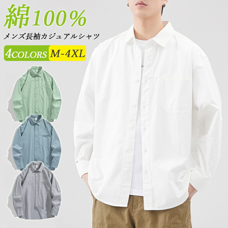 【送料無料】シャツ メンズ 長袖 ゆったり オックスフォードシャツ 無地 コットン ビッグサイズ オールシーズン お洒落 かっこいい ライトアウター 全4色 ~4