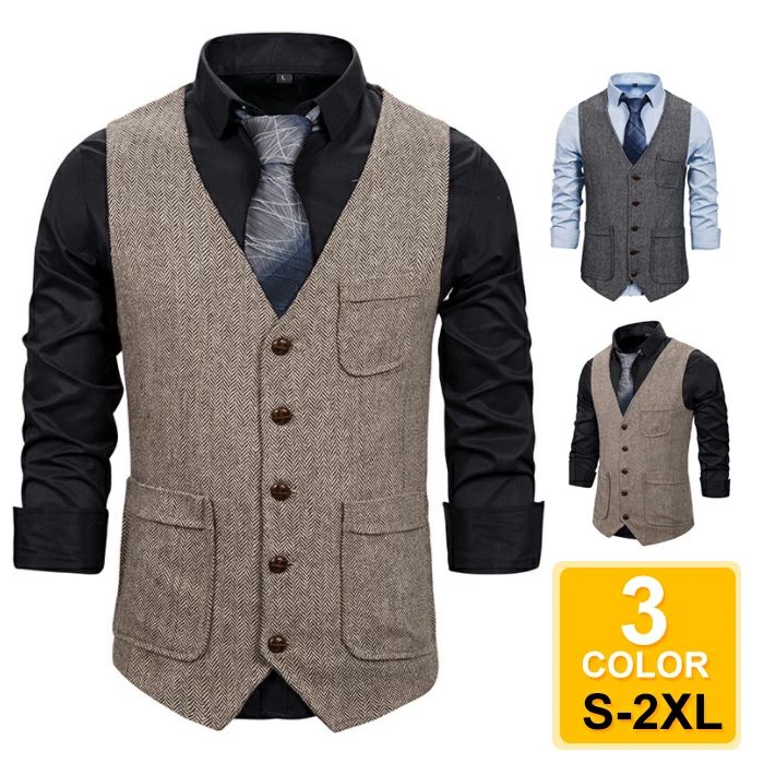 ベスト メンズ 春夏 秋 前開き Vネック チョッキ スーツベスト スリム ビジネスベスト ダブルポケット シングルボタン お洒落 アウター 細身 スリムベスト 紳士 ジレ 父