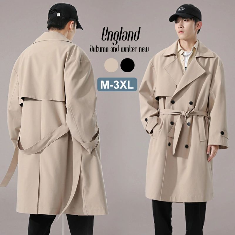 トレンチコート メンズ コート ミドル丈 無地 スプリングコート ステンカラー ジャケット 秋冬 メンズコート 通勤 ビジネス カジュアル 紳士服 アウター ボタン 防風 防寒対策 ロングコート ダブ