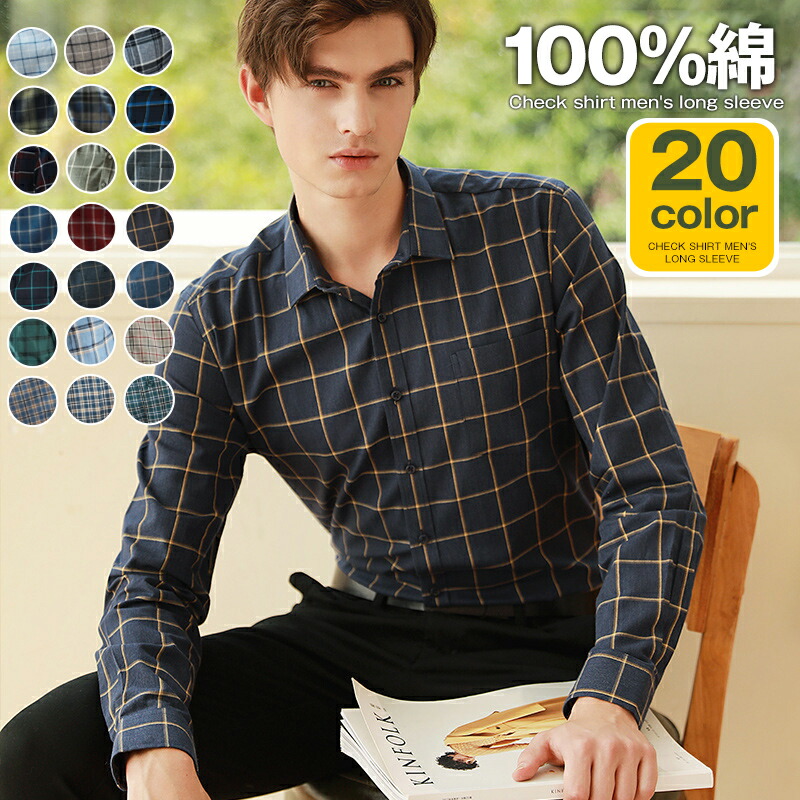 メンズ シャツ チェックシャツ ネルシャツ スリム メンズシャツ 長袖シャツ ボタン 長袖 チェック ストレッチ 秋服 春服 メンズファッション コットン 綿100%