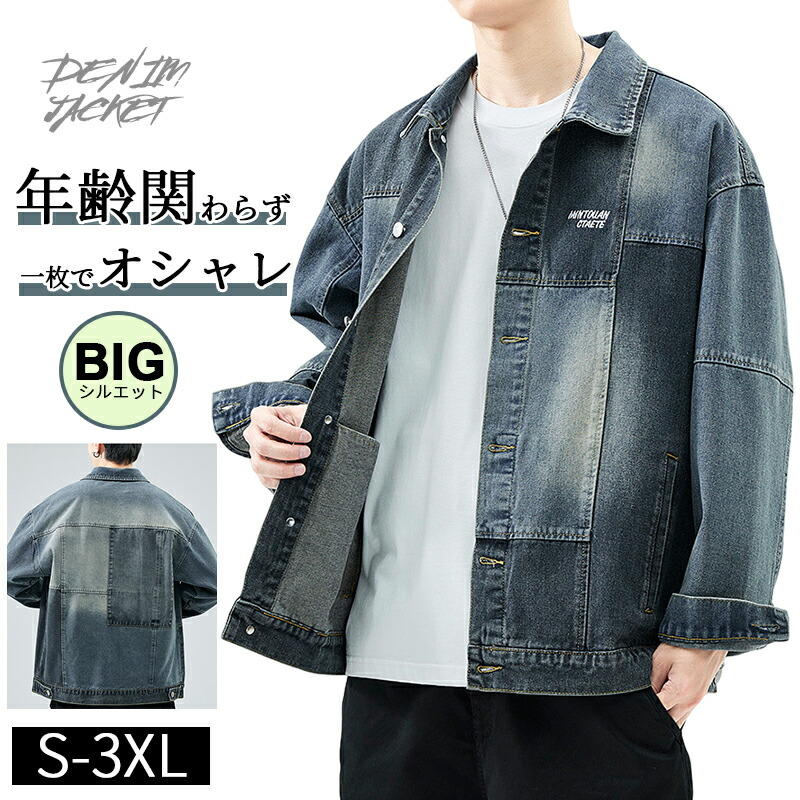 Gジャン メンズ ヴィンテージ デニムジャケット オーバーサイズ ライトアウター 春 秋 ブルゾン ゆったり アウター 春物 秋服 ジャケット 長袖 アメカジ 普段着 おしゃれ 男性用 ビッグ