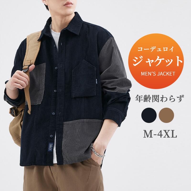 【送料無料】 カジュアルシャツ メンズ コーデュロイ ゆったり シンプル トップス オーバーサイズ シャツ アウター 大きめ 秋服 春 冬 お洒落 通勤 通学 コーヒー ネイビー ‐4