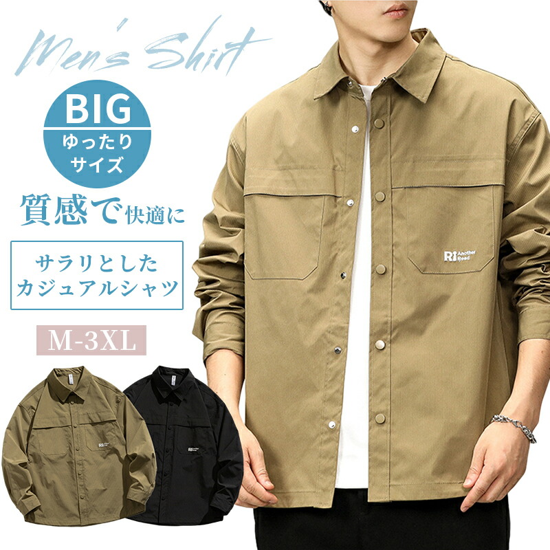 【送料無料】カーゴシャツ メンズ ゆったり アメカジ ストリート ライトアウター ポケット付き かっこいい お釣り 登山 キャンプ ブラック ダークグリーン ~3