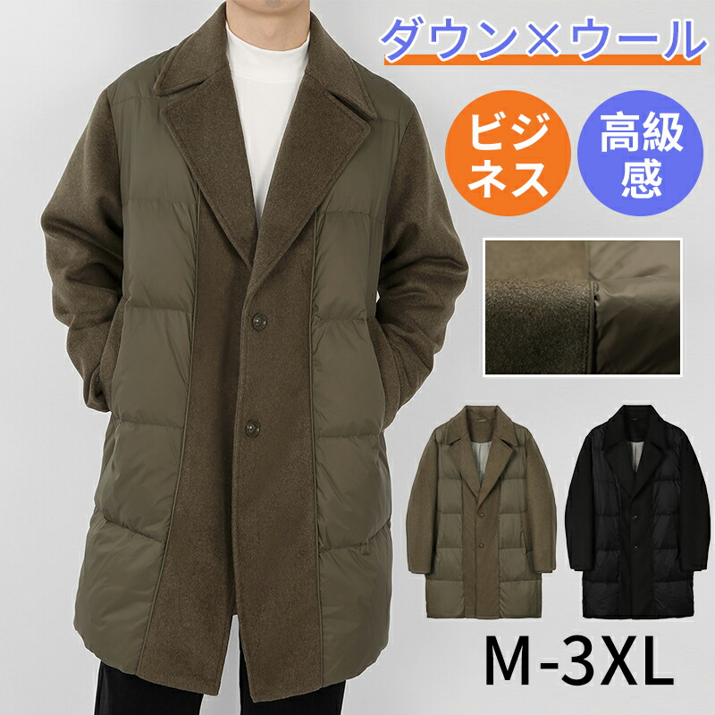 ビジネス ダウンコート メンズ 折り襟 ウール混 あったか ウールジャケット 厚手 ロングコート 通勤 ゆったり 防寒 ブルゾン 大きいサイズ カジュアル アウター 長袖 トップス かっこいい 紳士服