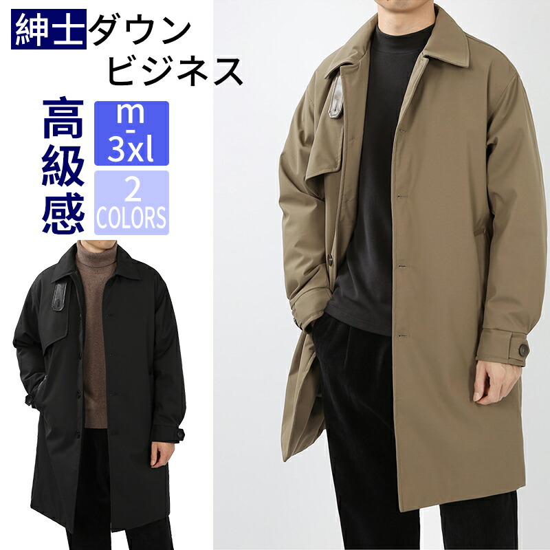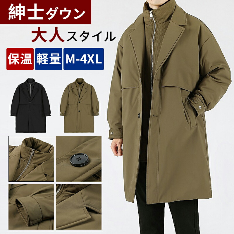 【送料無料】ダウンジャケット 暖かい ステンカラーコート 無地 シンプル おしゃれ チェスターコート 防寒対策 ビジネスジャケット オフィス 出張 冬服 ブラック カーキ 2 3