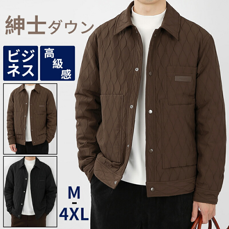 【送料無料】ダウンジャケット 暖かい ステンカラーコート 菱形柄 おしゃれ 防寒対策 ビジネスジャケット オフィス 出張 冬服 ブラック カーキ 2 3