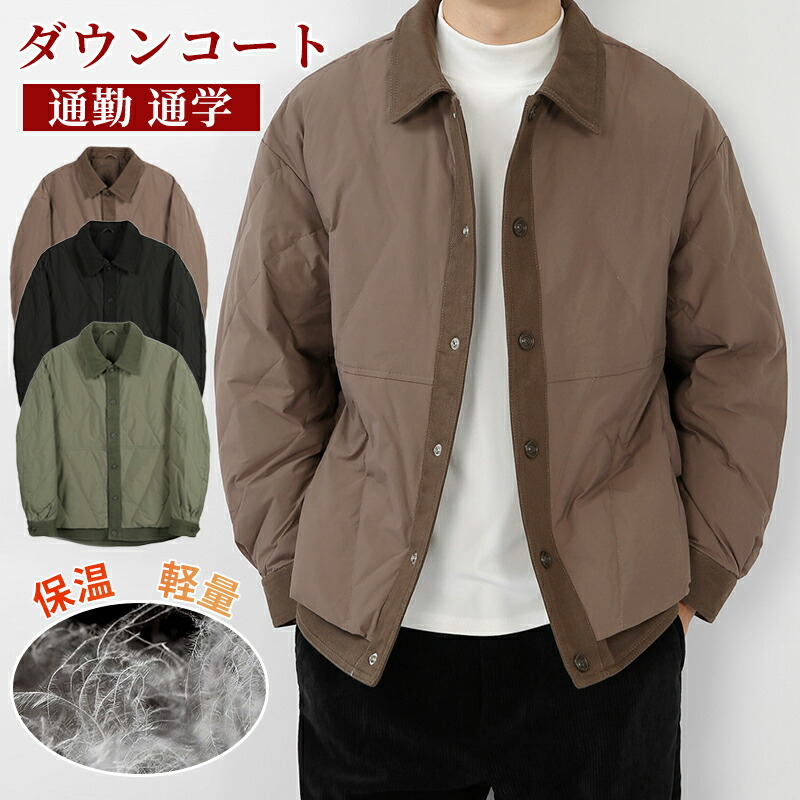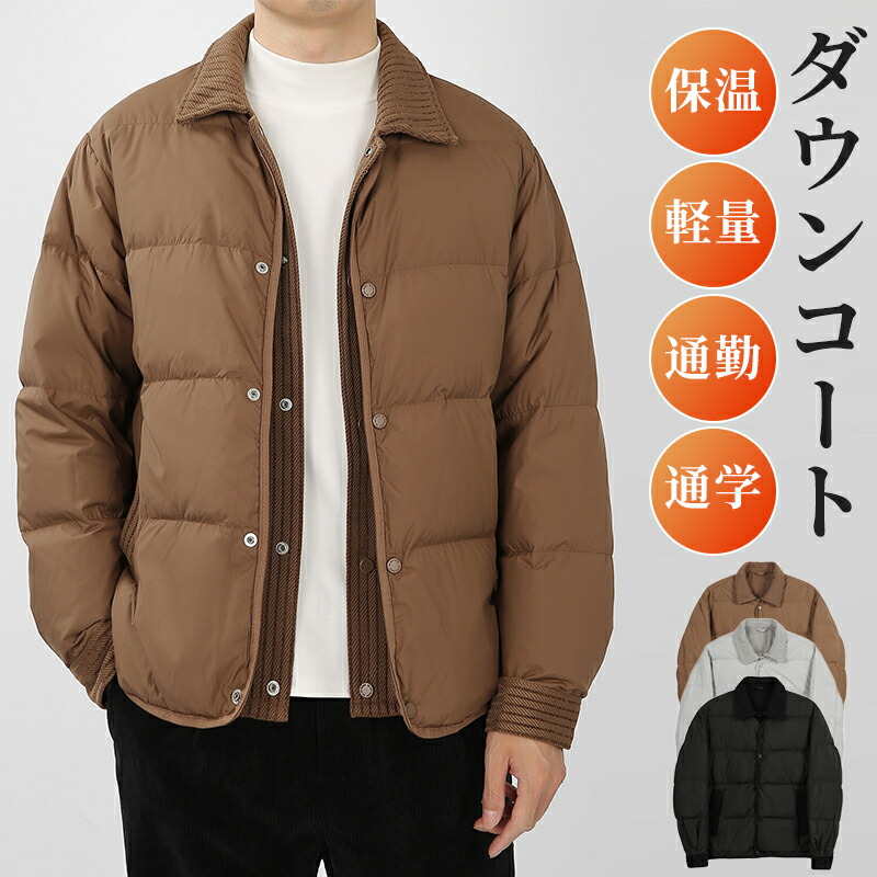 ダウンジャケット メンズ 襟付き ライトダウン ショート丈 アウター 暖かい ビジネス 防寒 オフィス ダウンコート 大きいサイズ 軽量 おしゃれ シンプル 防寒コート ボタン ミリタリー 防風 旅行