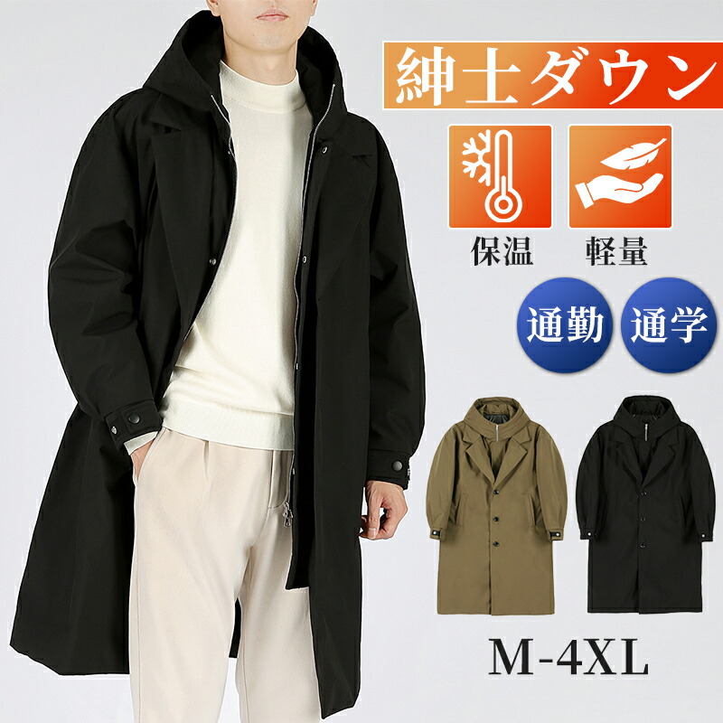 ダウンコート メンズ ロング ダウン90% 膝下 ジャケット 大きいサイズ ベンチコート 防風 暖かい アウター フード付き 厚手 おしゃれ スポーツ 中綿ジャケット アウトドア 通勤 通学 体型カバ
