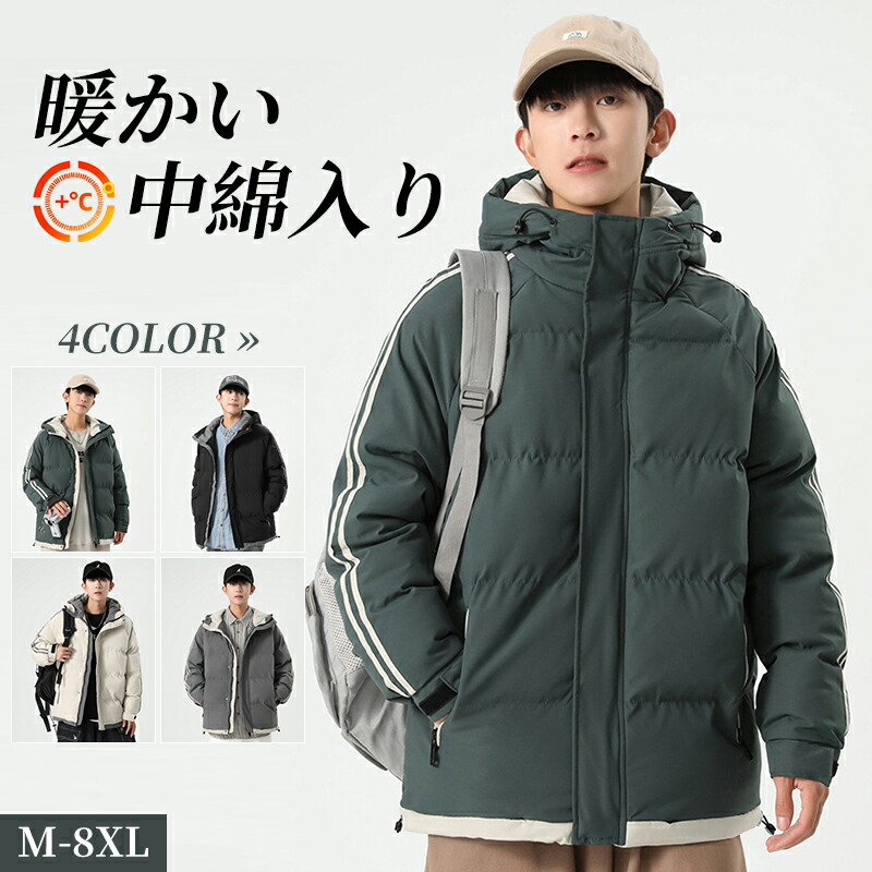 【送料無料】中綿ジャケット あったか 大きいサイズ ベンチコート 旅行 防寒着 防寒コート 保温性抜群 野球 部活 トレーニング ブラック グレー グリーン ベージュ ~8