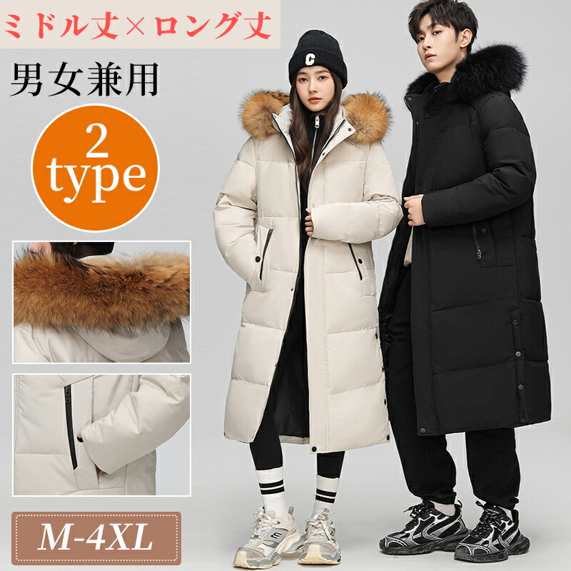 ダウンコート レディース メンズ ロング丈 ミドル丈 冬服 暖かい カップル ロングコート 膝下 おしゃれ 男女兼用 シンプル 厚手 メンズコート ペアルック ダウンジャケット 中綿コート アウトドア