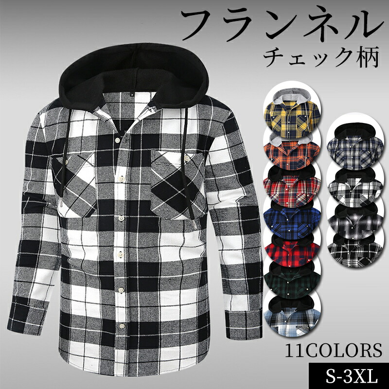 カジュアルシャツ チェック柄 メンズ 長袖 フード付き 春秋 冬 フランネル ビックシルエット ネルシャツ 長袖シャツ 開襟シャツ トップス 通勤 通学 重ね着 シャツジャケット リラックス ストリー