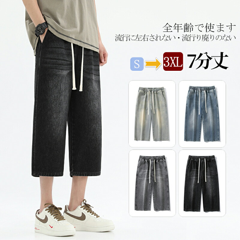 【送料無料】ハーフパンツ メンズ 7分 ストレートパンツ スポーツ デニムパンツ ジーパン ジーンズ ゆったり カジュアルパンツ 大きいサイズ ベージュ ブルー グレー ブラック ~3