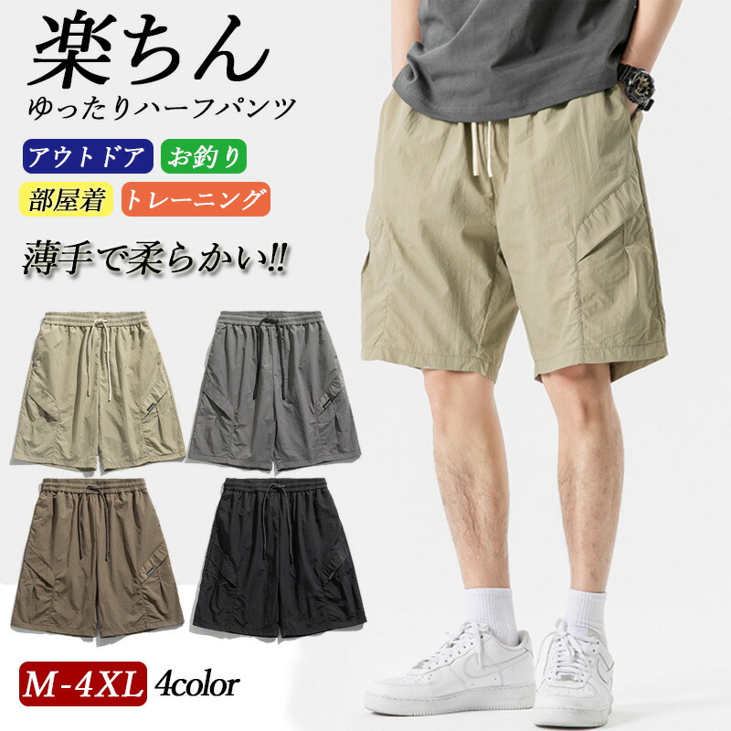 【送料無料】ハーフパンツ 5分丈 短パン ゆったり 速乾 ミリタリー ワイド ワークパンツ シンプル ウエストゴム カジュアルパンツ 半ズボン カーキ コーヒー グレー ブラック ~4