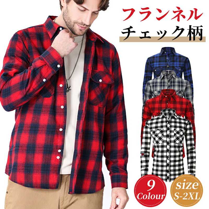 チェックシャツ メンズ 長袖 フランネル 細身 春秋 ネルシャツ 長袖シャツ トップス 開襟シャツ 通勤 通学 ワークシャツ インナーウェア 重ね着 アメカジ シャツジャケット リラックス ストリート
