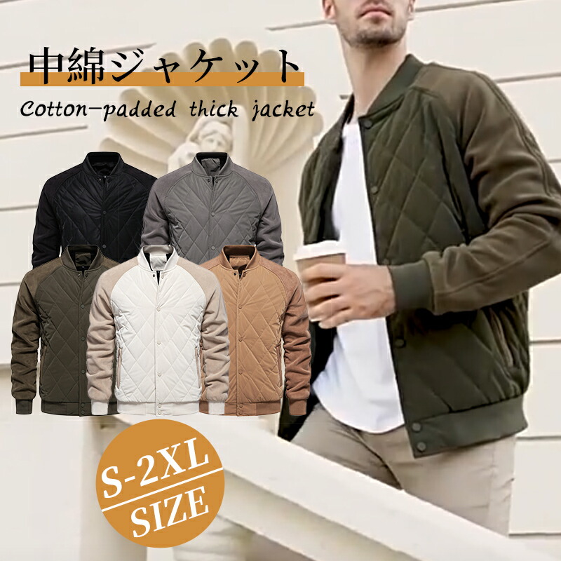 【送料無料】中綿ジャケット 暖かい ゆったり ミリタリージャケット 厚手 防風 メンズコート ブラック グレー グリーン キャメル ベージュ 2