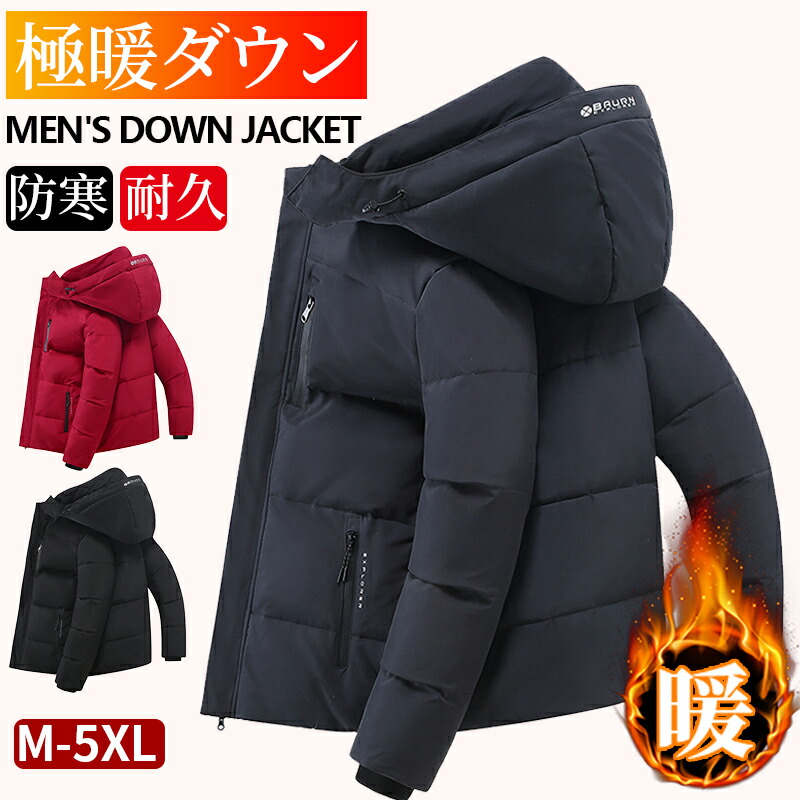 【送料無料】ダウンジャケット メンズ ビジネス 大きいサイズ 中綿コート 厚手 フード取り外す可 防寒着 40代 50代 60代 ブラック ダークグレー レッド