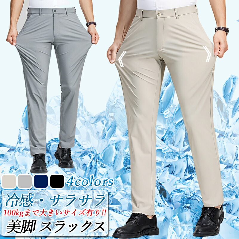 スラック メンズ 夏 クールビズ ストレッチ ビジネス 速乾 大きいサイズ 夏用 ビジネスパンツ 紳士 ゆったり 通勤 フォーマル 出張 パンツ ウォッシャブル 接触冷感 ナイロン メンズファッション