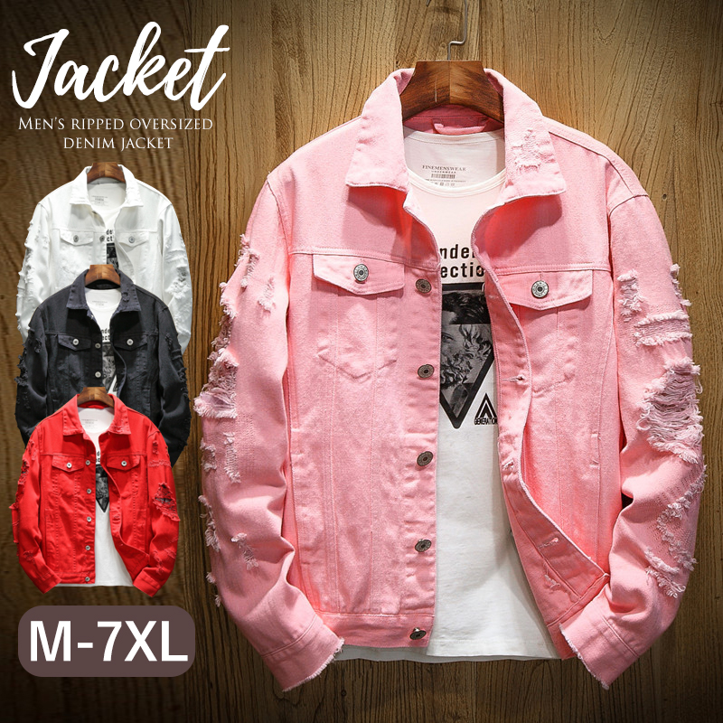 ジージャン メンズ ダメージ加工 ビッグシルエット ホワイト ブラック ピンク ジャン メンズ 春 夏 おしゃれ