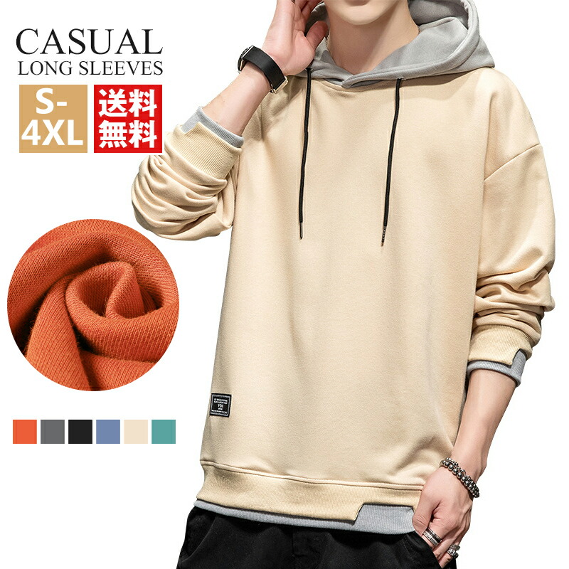 ★パーカー メンズ 長袖 フェイクレイヤード フード付き 秋服 人気 ストリート トップス 全6色 ////2/3/4