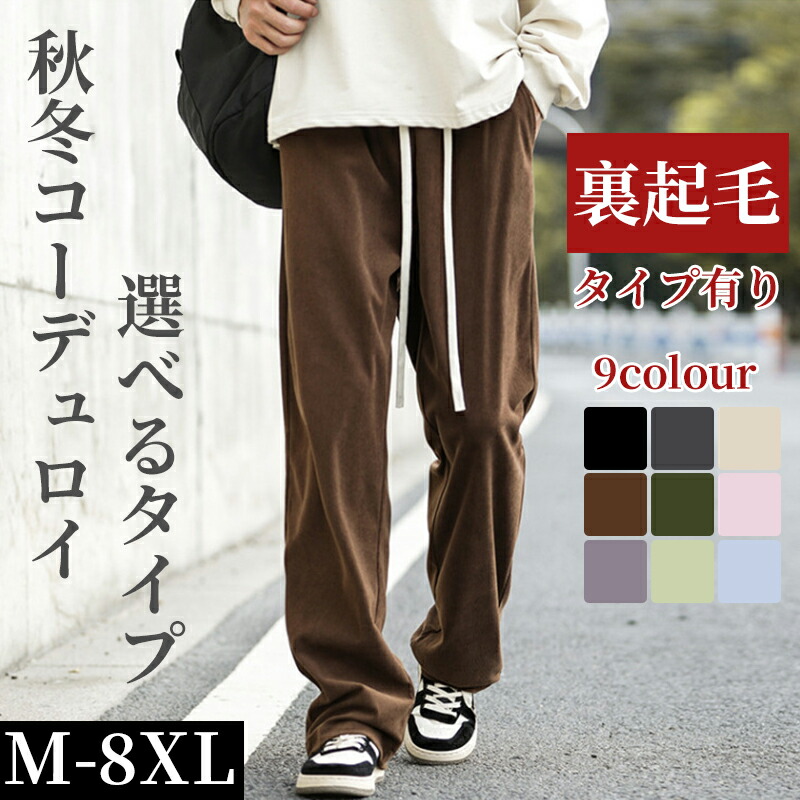 コーデュロイ パンツ ワイド メンズ 裏起毛 春秋 冬 あったか ストリート ロングパンツ ウエストゴム 大きいサイズ ゆったり シンプル おしゃれ ワイドシルエット 体型カバー リラックス スポーツ