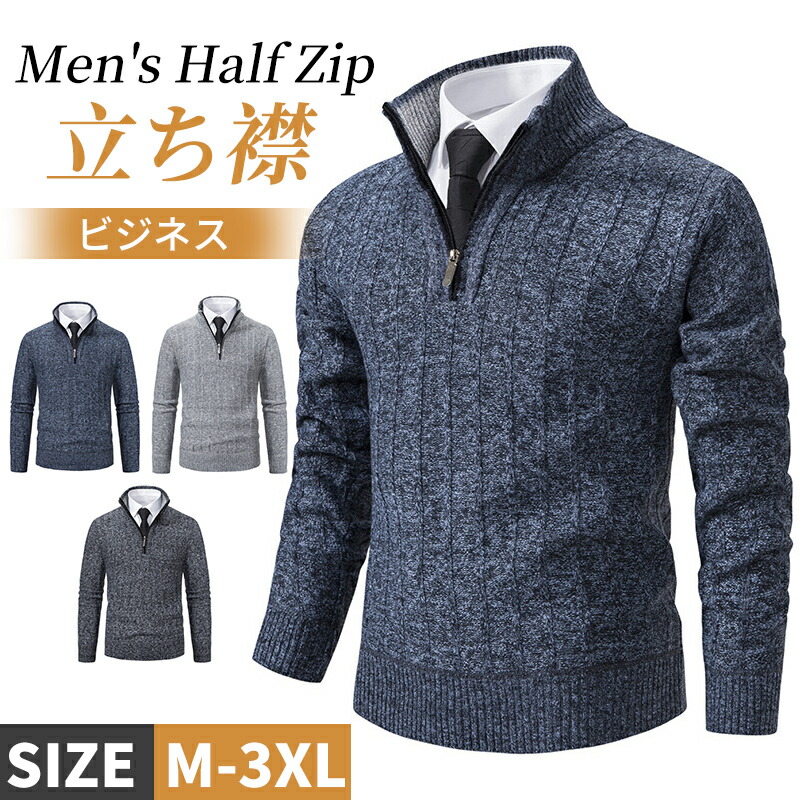 ハーフジップ ニット メンズ 秋 冬 春 セーター 長袖 あったか ポロ ビジネス ハイネック 厚手 プルオーバー メンズセーター フィット トップス 暖かい おしゃれ きれい