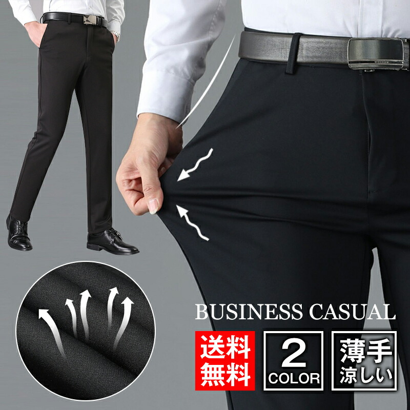 スラックス メンズ パンツ 春夏 クールビズ 夏 清涼 薄手 ストレート ビジネス フォマール スリム 伸縮性 ロングパンツ 細身 通勤 スーツパンツ スリムパンツ お洒落 美脚 父の日