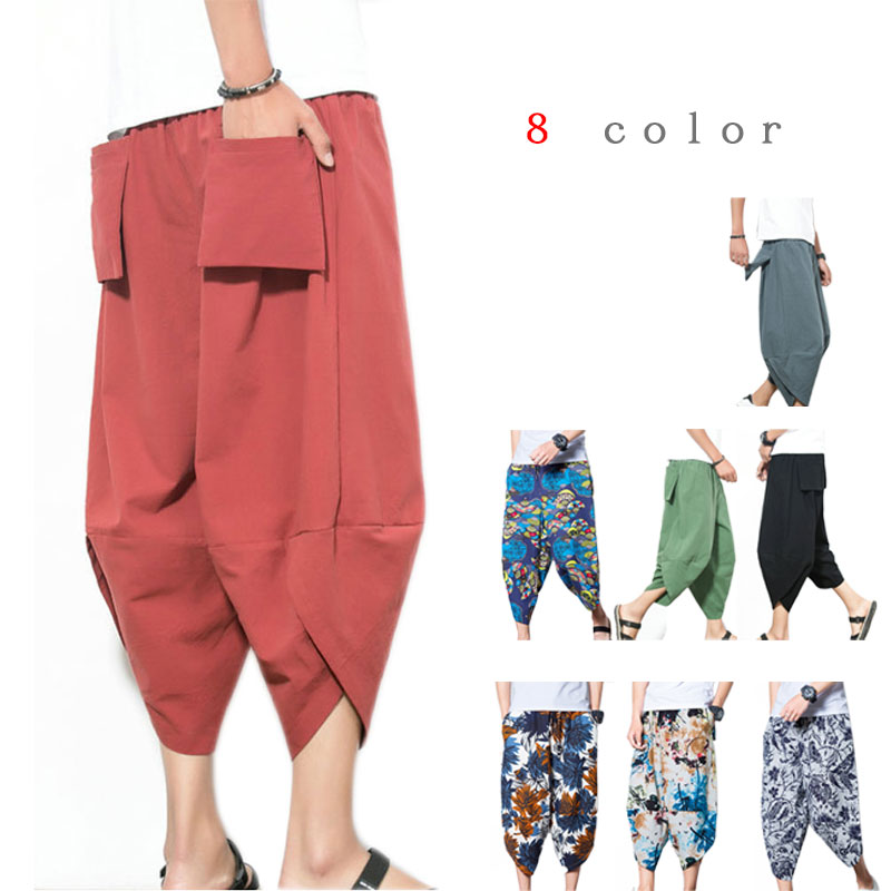 メンズパンツリネンパンツ7分丈綿麻パンツカジュアルリラックス パンツ ゆったり おしゃれ 無地8色選択可