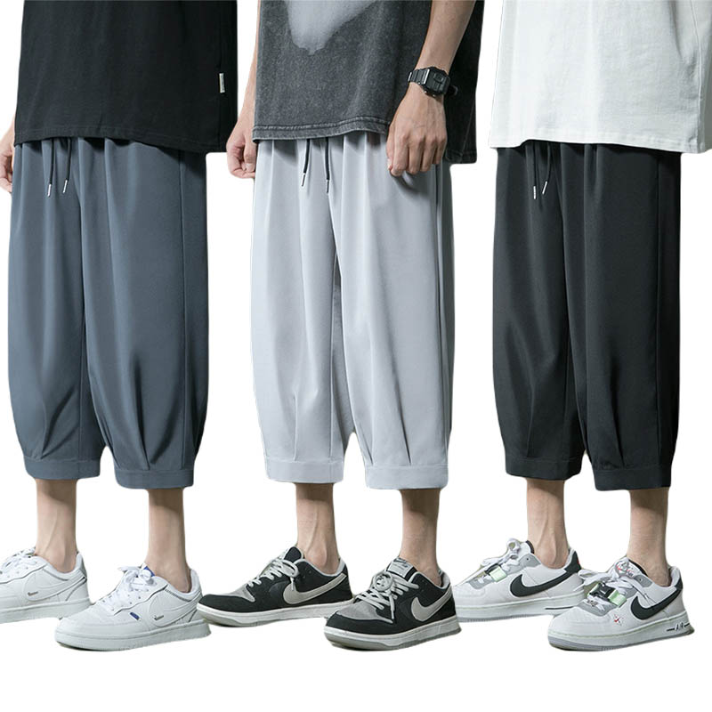アイスシルク パンツ メンズ 7分丈 サルエルパンツ ワイドパンツメンズファッション ズボン パンツ