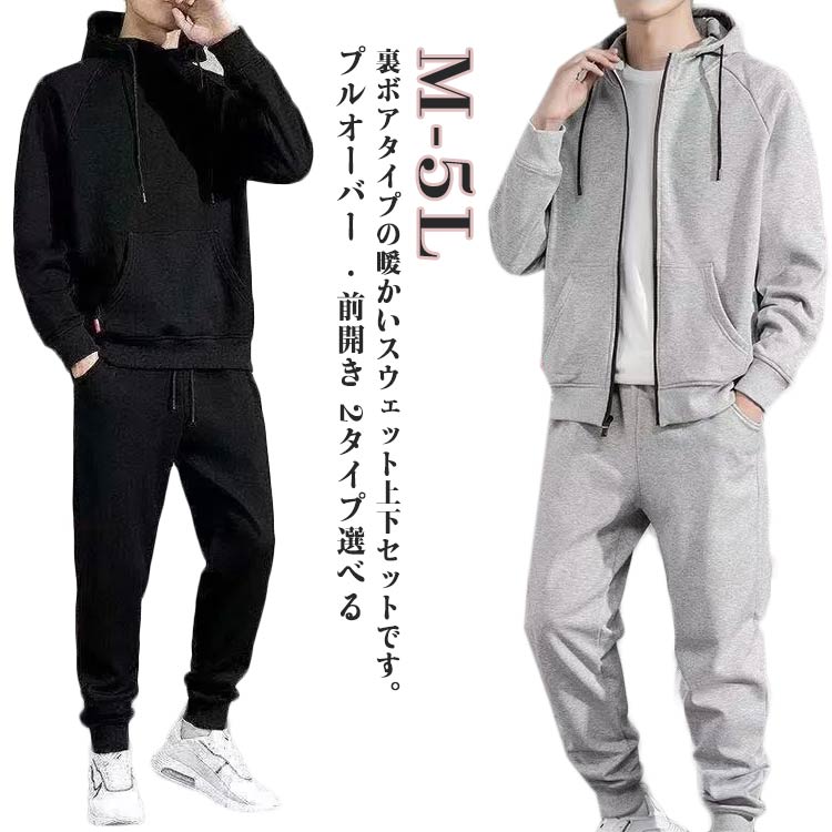 フード付き 前開き 2タイプ選べる ジップアップパーカー ズボン 上下セット ジャージ プルオーバーパーカー