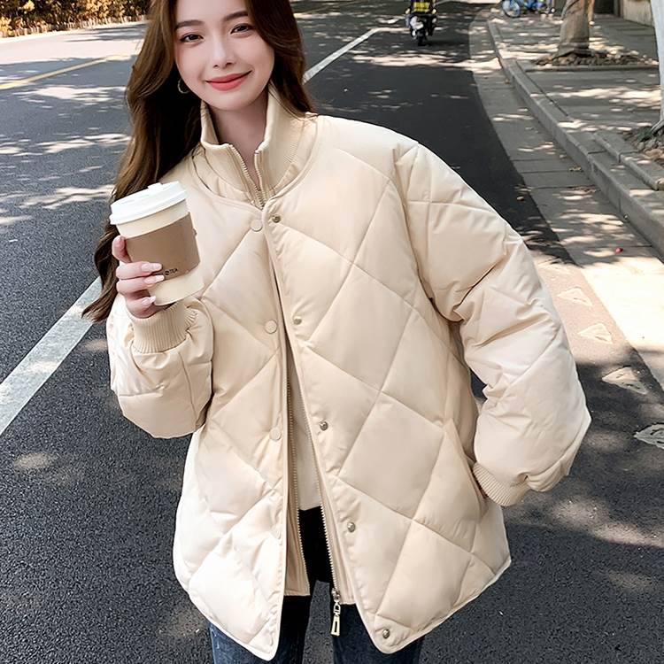 アウター コート ジャケット キルティングジャケット ミディアム丈 袖付き 長袖 襟なし ハイネック 前開き ファスナー ポケット 中綿 かわいい 大人可愛い きれいめ シンプル 大人 上品