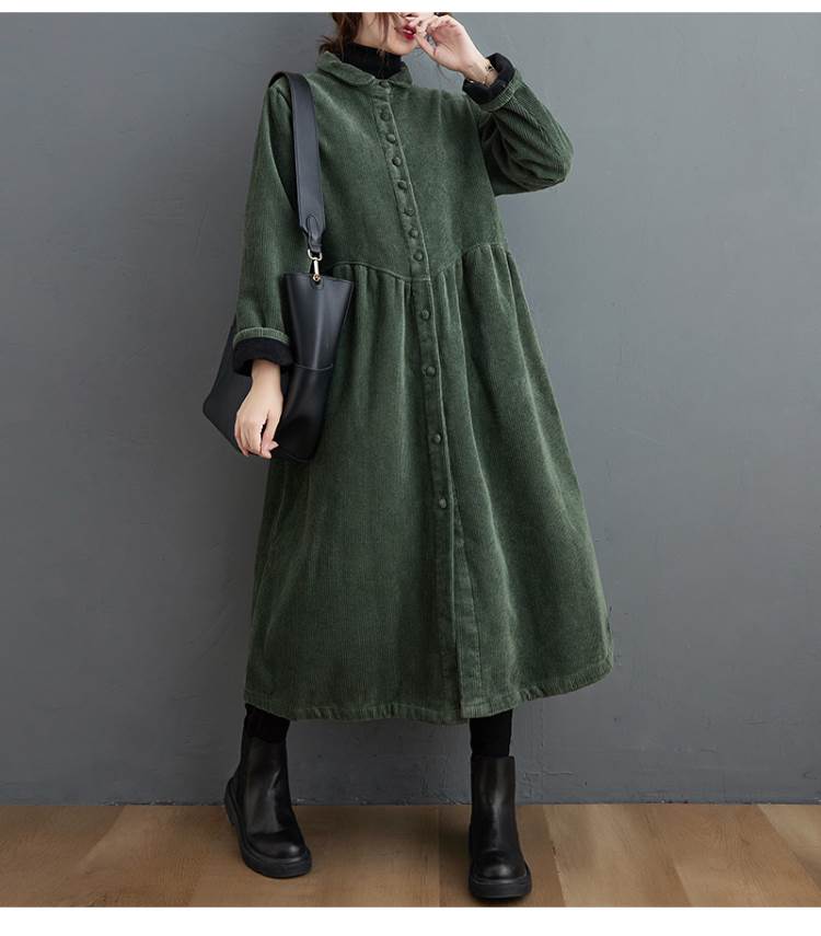 アウター コート ロング 長袖 前開き ボタン コーデュロイ かわいい きれいめ シンプル 大人 上品 おしゃれ かっこいい レトロ こなれ感 ラフ 個性的 主役級 存在感 秋 10代 20代 レ 冬