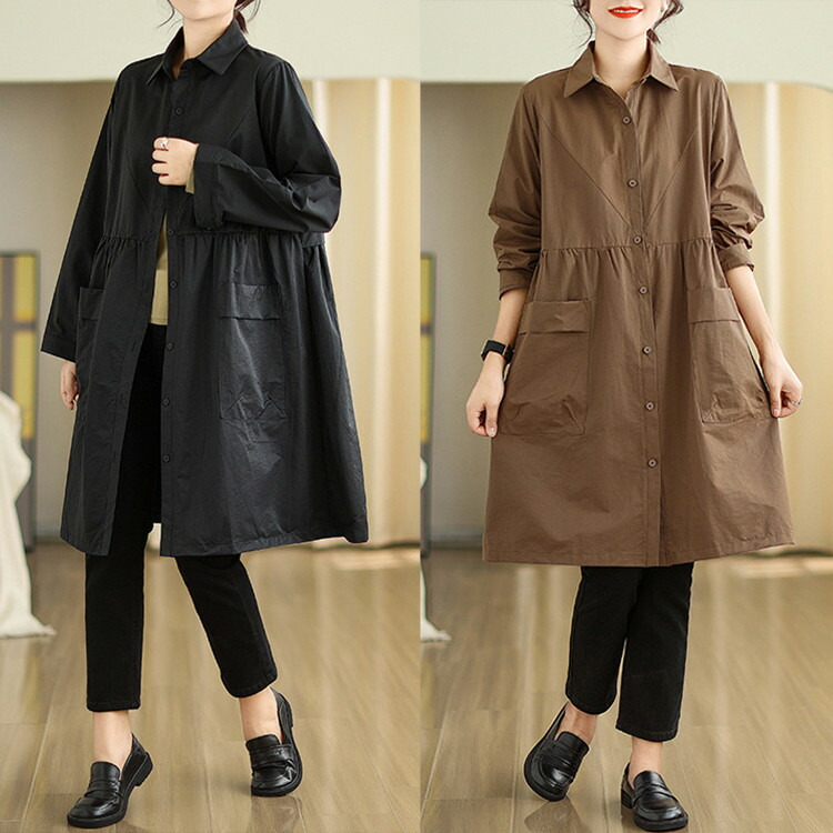 ライトアウター トレンチコート レディース シャツ ロングシャツ アウター 秋 秋服 ゆったり ロング丈 ポケット付き