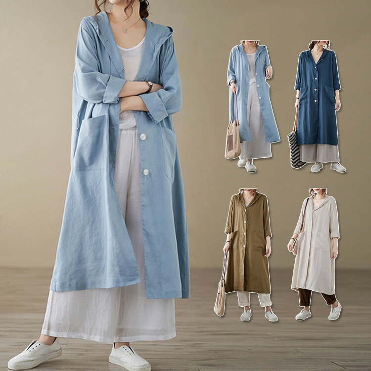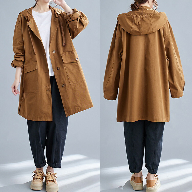 コート トレンチコート レディース 長袖 薄手 秋 秋服 ゆったり 体型カバー フード付き ポケット付き 春 ロング丈