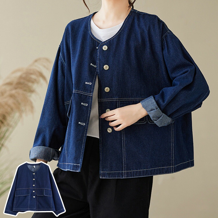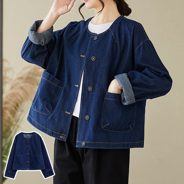 デニムジャケット ジャケット アウター コート レディース ゆったり トップス 長袖 秋服 秋 ノーカラー