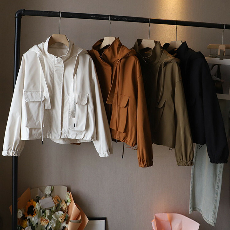 トレンチコート レディース アウター 長袖 トップス ゆったり フード付き ショート丈 体型カバー ビッグシルエット カジュアル フーディー 秋 ポケット付き レディースファッション