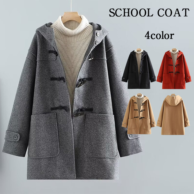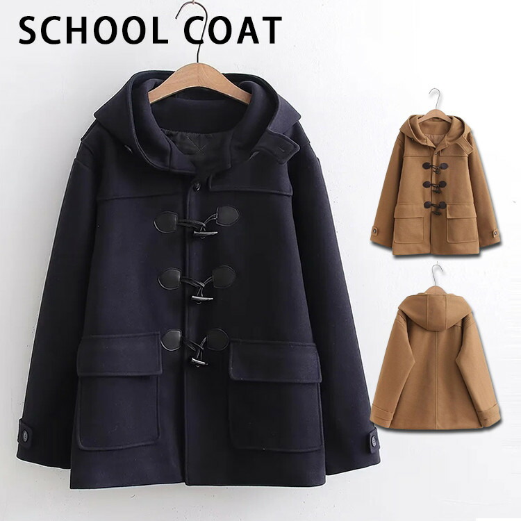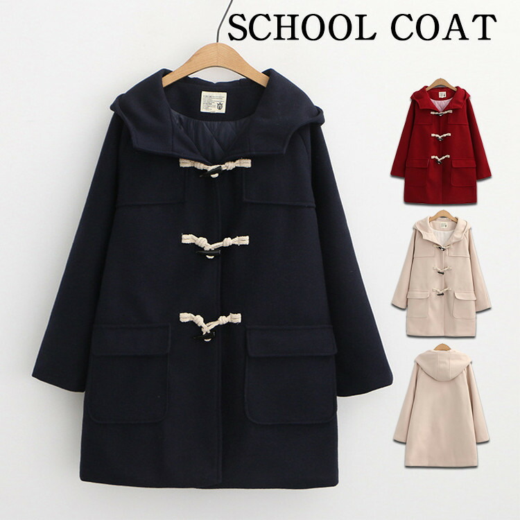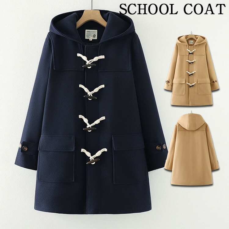 スクールダッフルコート 学生 学生制服 コート アウター 冬 かわいい 可愛い 上品 ポケット付きレディースファッション コート ジャケット