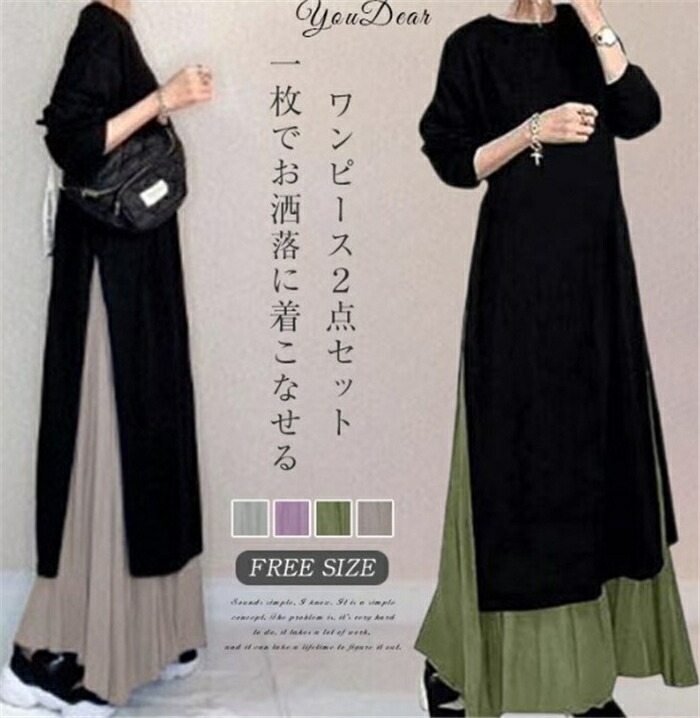 ワンピース 長袖 レディース 秋 春 ロングワンピース プリーツ ゆったり 体型カバー 20代 30代 40代 50代
