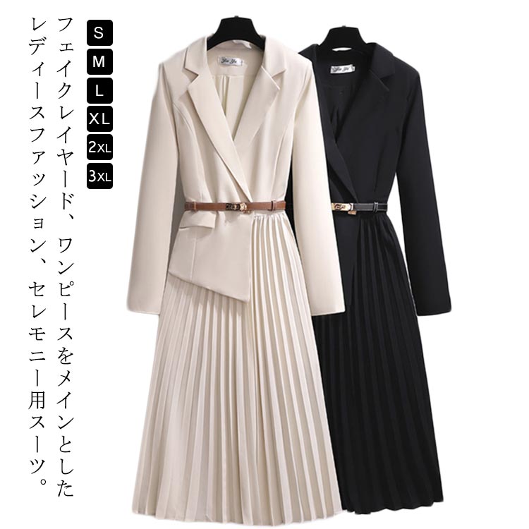 ワンピース セレモニースーツ 春 きれいめ プリーツ フェイクレイヤード 卒業式 フォーマルスーツ 入学式 卒園式 秋 おしゃれ ママスーツ 結婚式 二次会 お呼ばれ 大人 お宮参り スー 披露宴