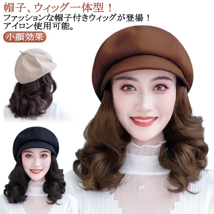 ウィッグ 付き 帽子 キャスケット 毛付き帽子 医療用帽子 医療用ウィッグ 30代 40代 50代 60代 大人可愛い