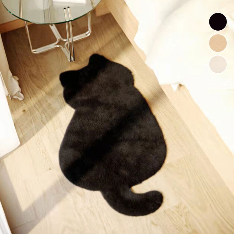 3B1 ラビットファー カーペット 子猫 猫 ネコ cat ラグマット ブランケット レディース 女の子 フロアマット 寝室 リビング 猫型マット 猫型カーペット シンプル 無地 お 猫型フロアマット