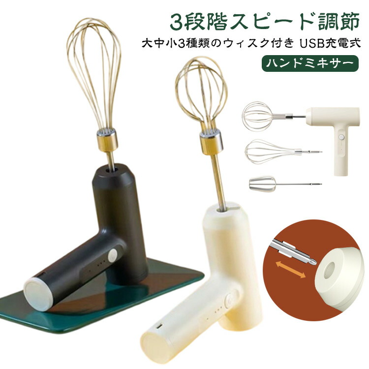 ハンドミキサー ホイッパー 電動 泡立て器 コンパクト 3段階スピード調節 キッチン用 強力 充電式 コードレス 速い 軽い クリーム ホイップ ケーキ お菓子作り 誕生日 ミキサー