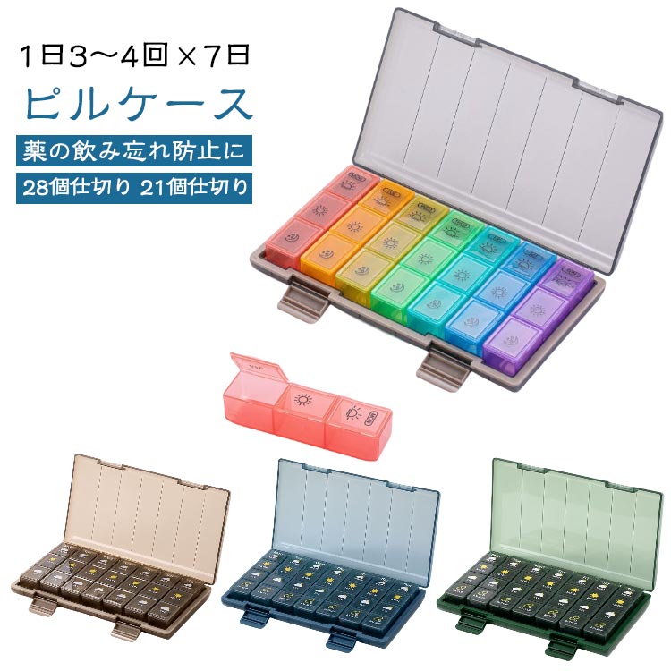 ピルケース 薬ケース1週間 飲み忘れ防止 28個仕切り 21個仕切り ピルケース 朝晩 小型 サプリケース 習慣薬箱 ピル 薬 収納ケース 携帯用 単独で携帯できる 薬ケース 取り外し可能