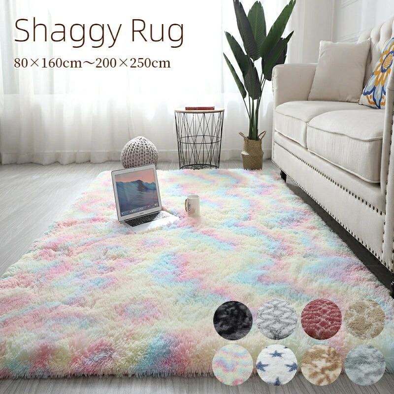 柔らかいシャギーラグマット レインボーカラー あずき色 ベージュ ライトグレー 星柄 ブラックグレーグレーグラデ カーキグラデ ブラックグレー 引っ越し祝い 新生活 贈り物 ギフト