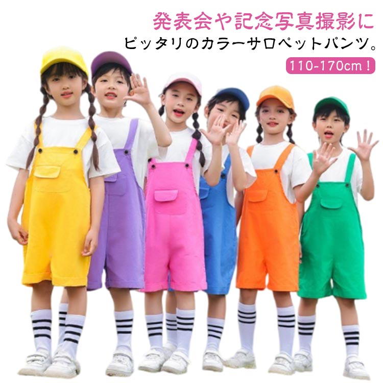 カラーパンツ サロペットパンツ 男女兼用 子供 ダンス衣装 ロングパンツ イベント 発表会 記念写真撮影
