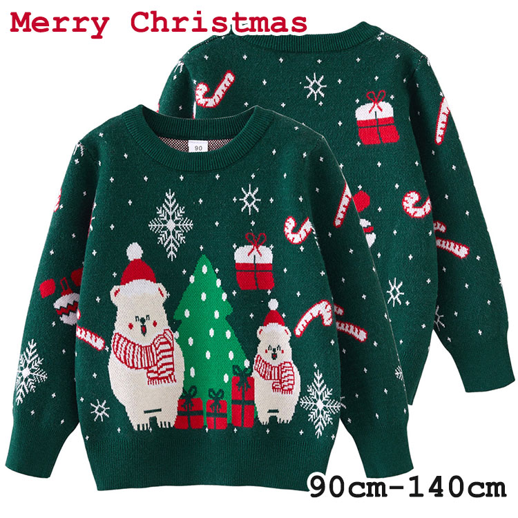 子供服 セーター クリスマスセーター 女の子 男の子 90cm 100cm 110cm 120cm 130cm 140cm ニットセーター グリーン 秋冬 キッズ かわいい トップス 防寒 男女兼用