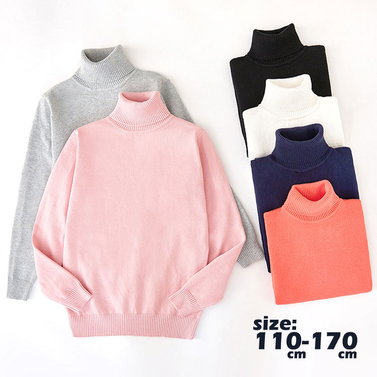 キッズ 長袖 ニット セーター 男の子 女の子 タートルセーター 子供服 トップス タートルネック 秋冬 ボーイズ ガールズ 保温 暖かい 防寒 ジュニア 小学生 中学生 高校生 シンプル 着回し 通