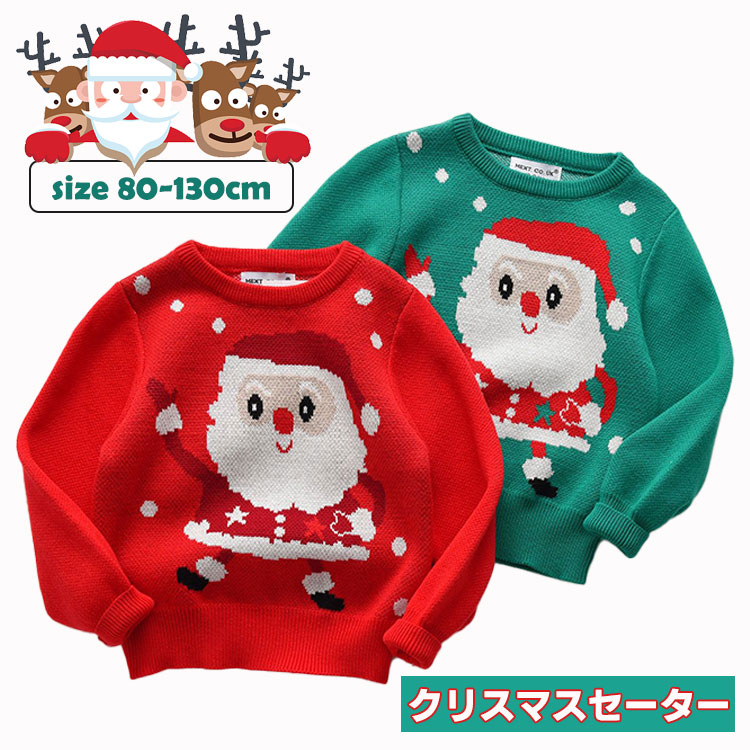 クリスマスセーター キッズ 女の子 男の子 かわいい サンタさん サンタクロース 子供服 ニットセーター プルオーバー レッド グリーン 秋冬 トップス 防寒 男女兼用 ベビー 赤ちゃん 幼