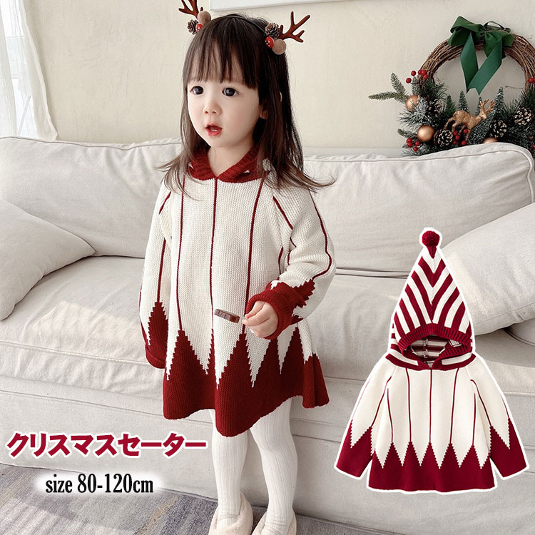 秋 冬 セーター キッズ クリスマス 女の子 ポンチョ フォード付き ニットセーター 長袖 トップス 防寒 子供服 赤ちゃん ベビー ガールズ 新年 プレゼント 80 90 100 110