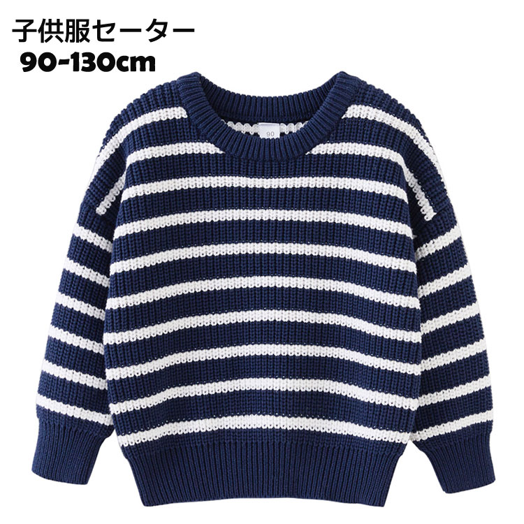 子供用かわいいニットセーター おしゃれ 90 100 110 120 130 ネイビー