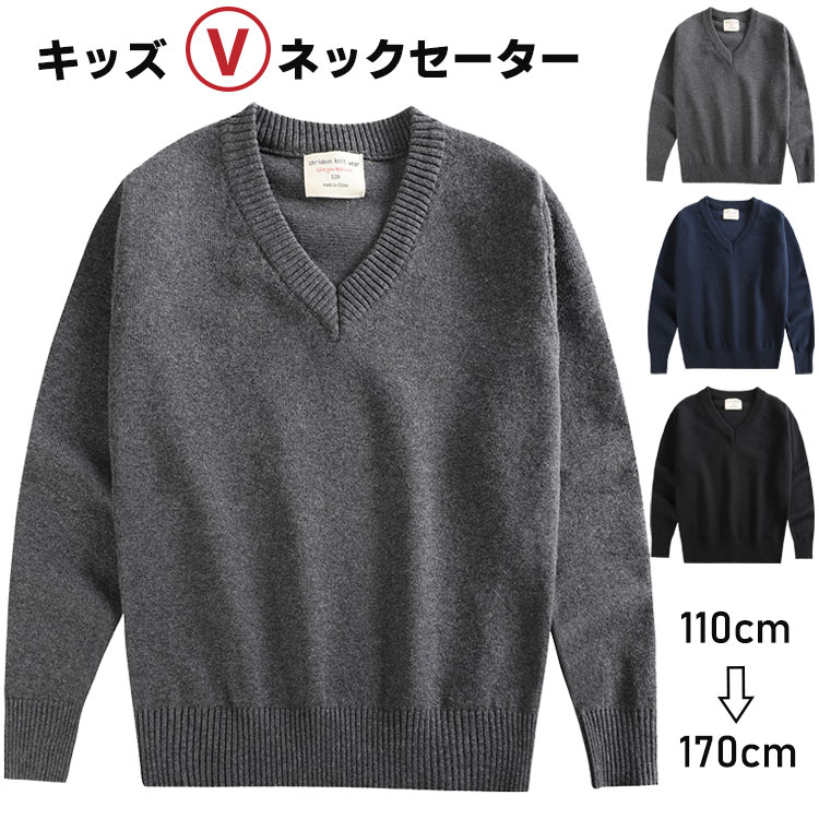 キッズ 子供服 Vネック スクール セーター ニットセーター 女の子 男の子 ボーイズ 無地 ゆったり 保温 暖かい 秋冬 防寒 シンプル 着回し 通学 通園 普段着 制服 大きいサイズ 110 12